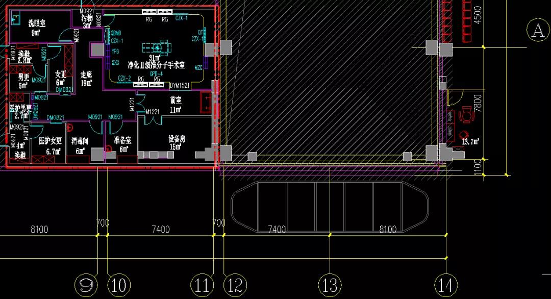 位于大樓二層,共設II級準分子激光手術室1間,洗眼室1間,輔助用房以及濕區等,面積約160㎡。