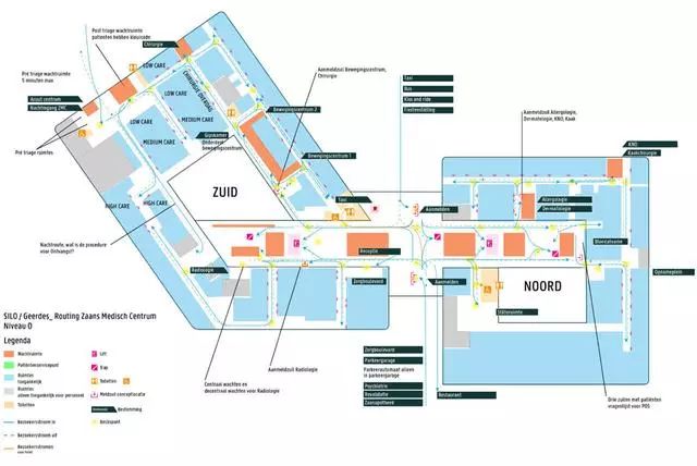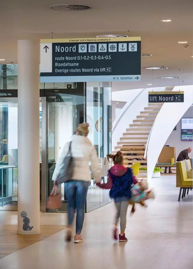 荷蘭一家建筑面積近4萬平米的綜合性醫(yī)院——Zaans Medisch Centrum,導視設(shè)計就非常有特色。