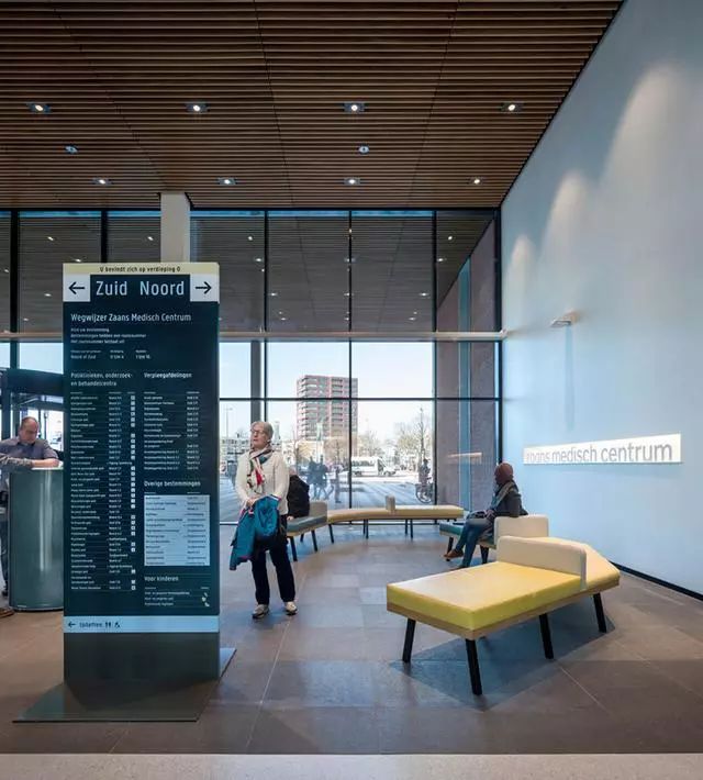 為了解決這個問題,Zaans Medisch Centrum設(shè)計團隊從醫(yī)院入口到內(nèi)部,全程做好導視標牌的點位布置。