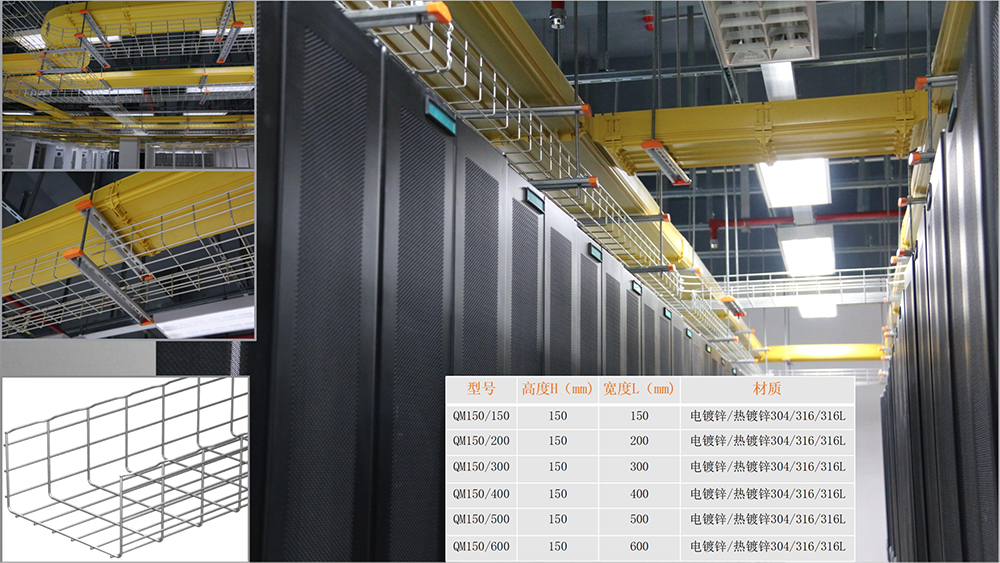 4. 網(wǎng)格橋架系統(tǒng)安全使用溫度范圍-40℃到+ 150℃,期間沒有任何變化特征。防火性能強(qiáng)在1000攝氏度的高溫下也可保持90分鐘,保護(hù)橋架的安全。
