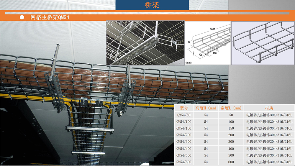 2. 經(jīng) 久 耐 用、安 全 牢 固 。網(wǎng)格電纜橋架是 由 高 品 質(zhì) 的 鋼 絲 焊 接 而 成,除了電鍍鋅和熱鍍鋅的表面處理,網(wǎng)格橋架和附件還提供高品質(zhì)經(jīng)去污處理的304L和316L不銹鋼系列,經(jīng)鹽霧測(cè)試后表面,其使用壽命是未經(jīng)處理的不銹鋼的三到四倍,即使在嚴(yán)苛的環(huán)境下也能保證長(zhǎng)期的耐用性。而且線路和設(shè)備的檢修非??焖侔踩?。